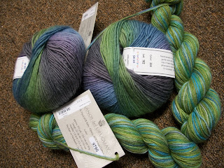 And look at this--even the yarns we bought have green featured! What the heck is going on?? |